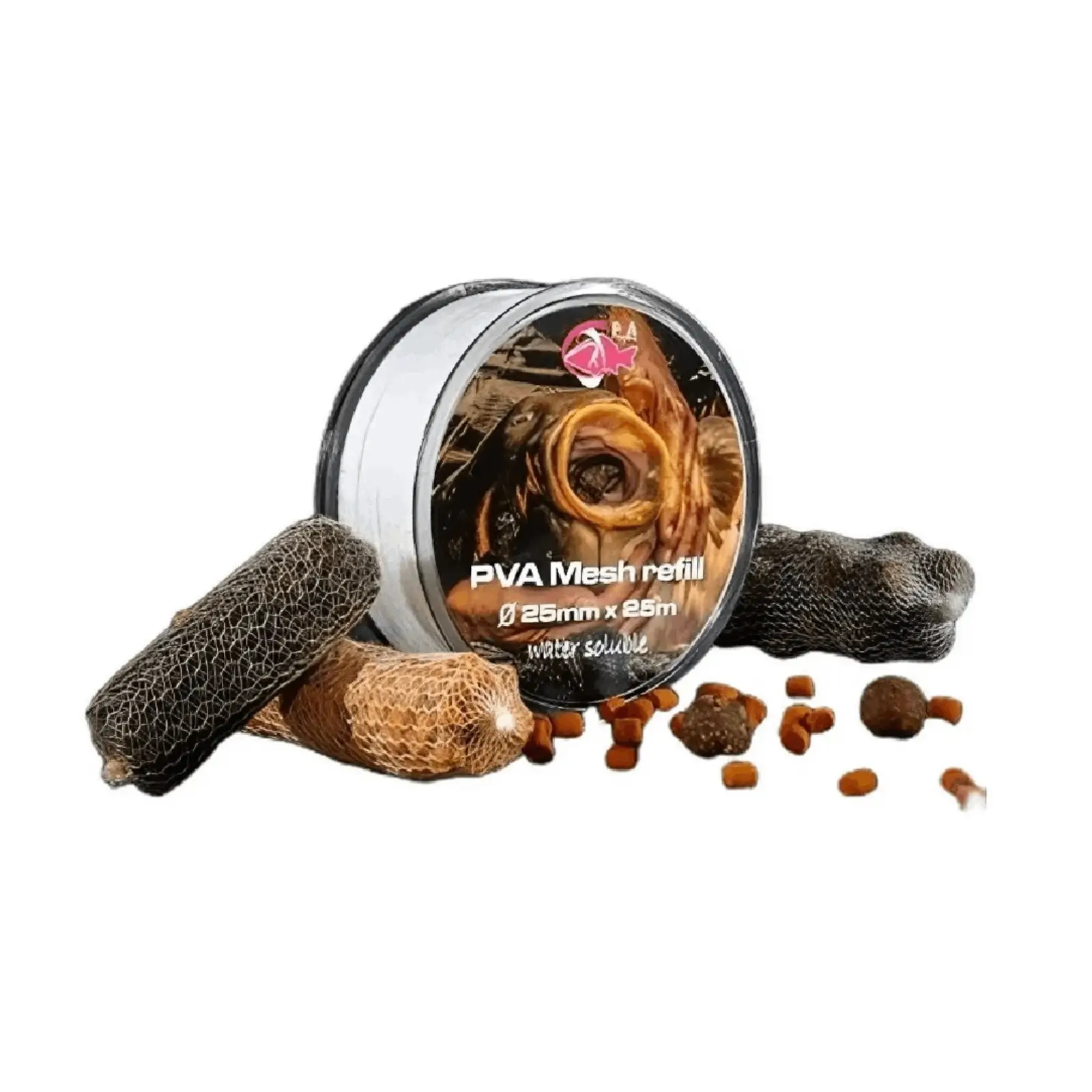 Rezervă economică de plasă solubilă cu lungimea de 25m și diametru de 25mm, pentru reîncărcarea sistemelor de nădire. Ideală pentru pescarii care folosesc săculeți.